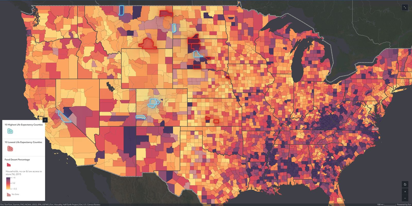 2018-2020 Mortality Files (NCHS); Food Environment Atlas (USDA); Living Atlas (ESRI)